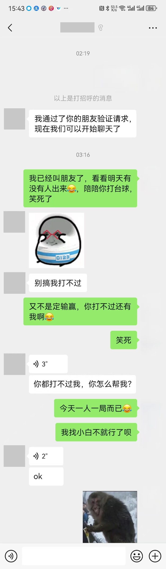 这个昨天去佛山搭讪回来的,不过那边失败率好高,搭到还真幸运。她现在是无业流氓。昨天请她打打球加个宵夜,也就每人几十块而已,也挺好聊的,好腼腆。好聊的时候可以摸摸面蛋的,反正还可以。个人感觉她现在处于空窗期哈哈。